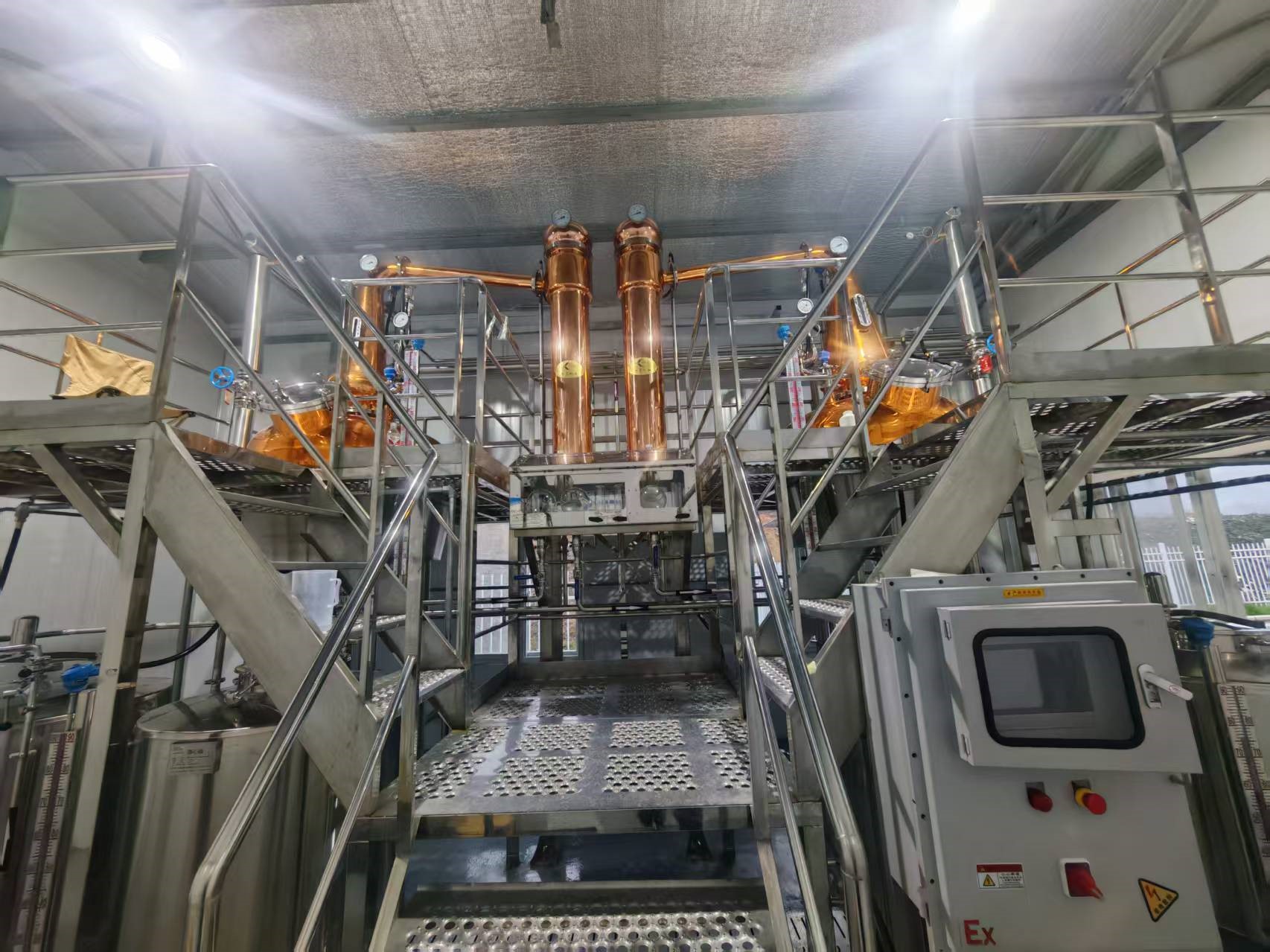 根據(jù)不同釀酒原料的組分構(gòu)成,可為用戶設計選用不同參數(shù)的蒸餾機組,經(jīng)兩次蒸餾,可獲得濃度為68-75%(V/V)威士忌原酒,這種方法生產(chǎn)出的蒸餾酒,能很好的分離出蒸餾的二次產(chǎn)物,便于剔除具有粗糙刺激味的易揮發(fā)的高級醇中的不理想成分,使成品酒中蘊含的組分豐富協(xié)調(diào),原料香氣濃郁,酒體豐滿細膩,余味甘烈悠長。